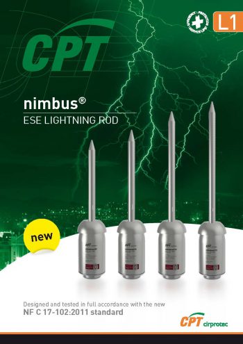 • NIMBUS15 Early streamer emission lightning rod. Stainless steel AISI 316. Early streamer emission: 15 us. NFC 17-102:2011.